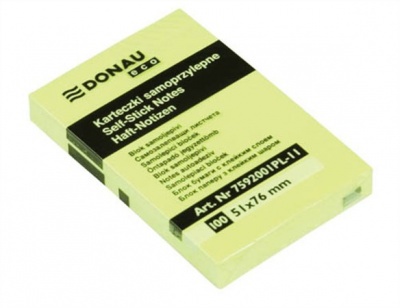 KezdőlapIrodaszerekIrodai kiegészítőkÖntapadó jegyzettömbök és adagolókÖntapadó jegyzettömb, 51x76mm, 100 lap, DONAU "ECO", sárga